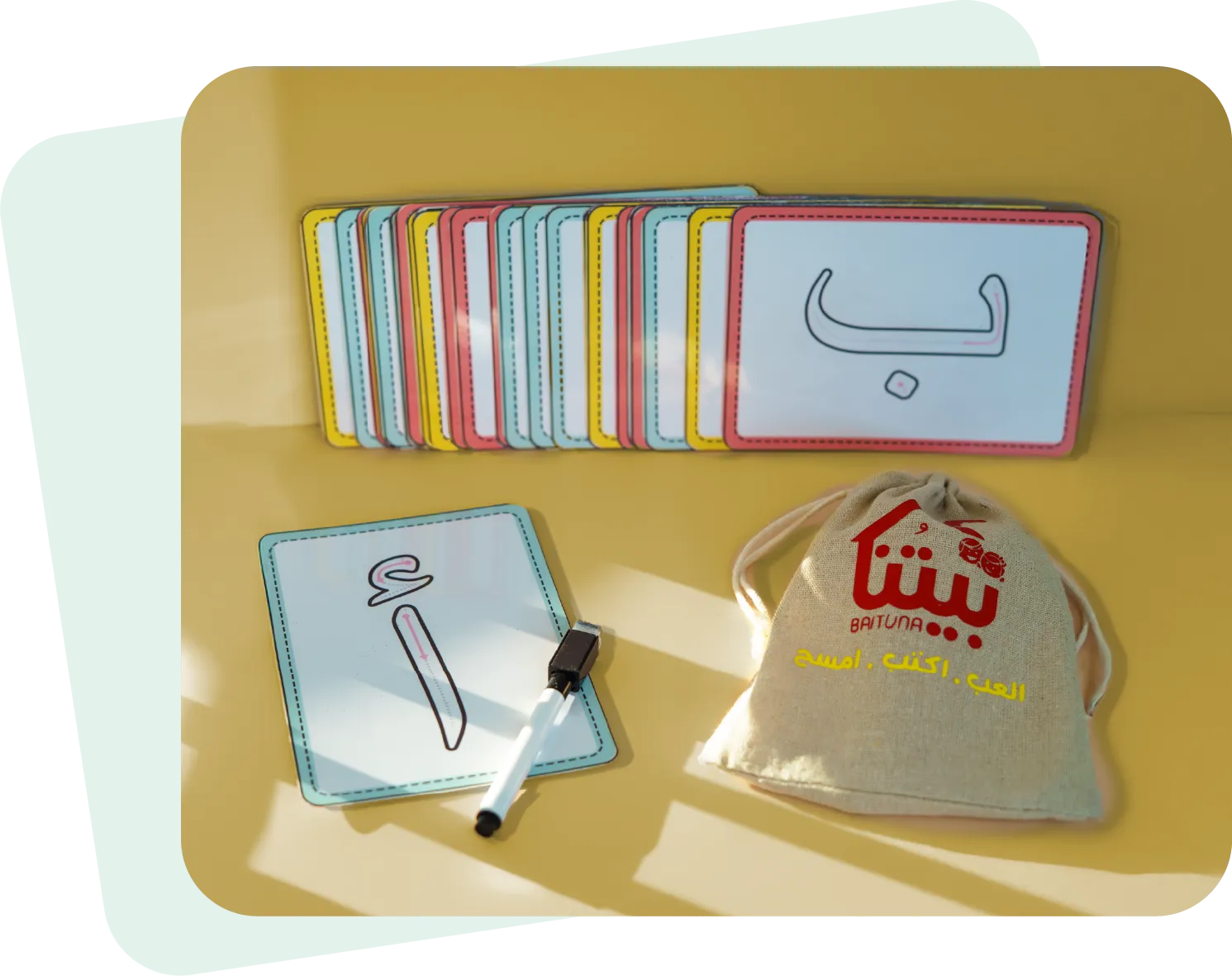 بطاقات بجودة عاليـة مغلفة حراريـاً، يمكـن لطفلك الكتابـة عليهـا مرات عديـدة، مكتوبة بخط واضح وكبير لدعم تمارين ما قبل الكتابة وتدريب يد الطفل وإدراكه عـلى اتجاهـات رسم الحروف، يصحبها عدة أفكـار لتحويل الكتابة لأنشطة شيقة وممتعة.